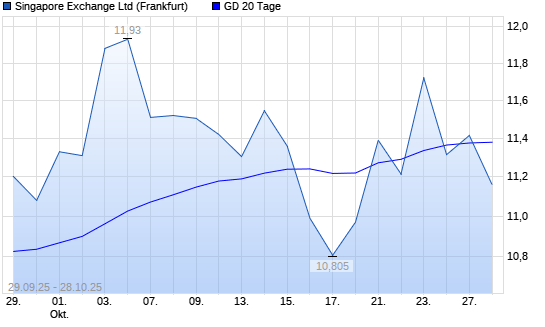 Mit dem Anstieg auf 11,41 EUR hat die Singapore Exchange-Aktie am 27.10.2025 die 20-Tage-Linie nach oben gekreuzt.Die Singapore Exchange-Aktie befindet sich seit dem 10.04.2025 im langfristigen ...weiterlesen