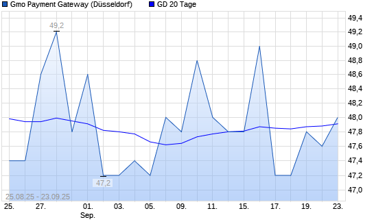 Mit dem Rücksetzer auf 47,60 EUR hat die GMO Payment Gateway-Aktie am 22.09.2025 die 20-Tage-Linie nach unten gekreuzt.Die GMO Payment Gateway-Aktie befindet sich seit dem 08.07.2025 im ...weiterlesen