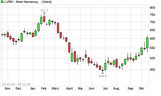 Mit dem Anstieg auf 606,50 EUR hat die LVMH Moët Hennessy Louis Vuitton-Aktie (ISIN FR0000121014) am 17.10.2025 ein neues 6-Monats-Hoch erreicht und damit den Kurs vom 15.10.2025 eingestellt.Die ...weiterlesen