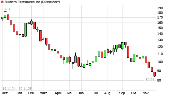 Mit dem Rücksetzer auf 84,66 EUR hat die Builders Firstsource-Aktie (ISIN US12008R1077) am 18.11.2025 ein neues 12-Monats-Tief erreicht und damit den Kurs vom 14.11.2025 eingestellt.Die ...weiterlesen