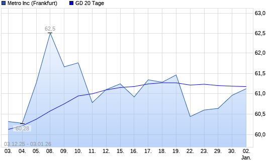 Mit dem Anstieg auf 61,12 EUR hat die Metro-Aktie am 02.01.2026 die 20-Tage-Linie nach oben gekreuzt.Die Metro-Aktie befindet sich seit dem 14.08.2025 im langfristigen Abwärtstrend und ...weiterlesen