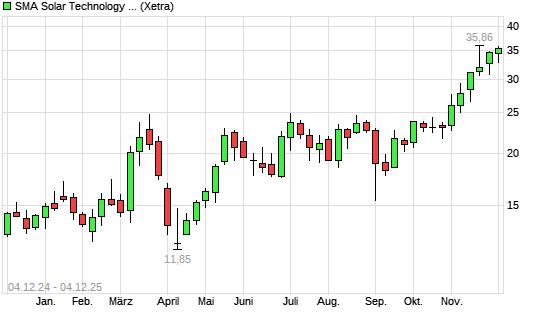 Mit dem Anstieg auf 35,18 EUR hat die SMA Solar-Aktie (ISIN DE000A0DJ6J9) am 03.12.2025 ein neues 12-Monats-Hoch erreicht und damit den Kurs vom 19.11.2025 eingestellt.Die SMA Solar-Aktie befindet ...weiterlesen