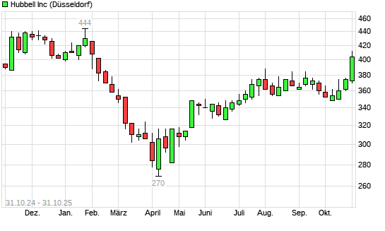 Mit dem Anstieg auf 404,00 EUR hat die HUBBELL-Aktie (ISIN US4435106079) am 30.10.2025 ein neues 6-Monats-Hoch erreicht und damit den Kurs vom 29.10.2025 eingestellt.Die HUBBELL-Aktie befindet ...weiterlesen