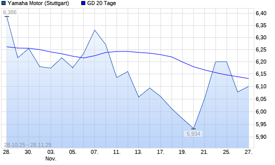 Mit dem Anstieg auf 6,10 EUR hat die Yamaha Motor-Aktie am 27.11.2025 die 20-Tage-Linie nach oben gekreuzt.Die Yamaha Motor-Aktie befindet sich seit dem 06.01.2025 im langfristigen Abwärtstrend ...weiterlesen