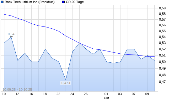 Mit dem Anstieg auf 0,51 EUR hat die Rock Tech Lithium-Aktie am 09.10.2025 die 20-Tage-Linie nach oben gekreuzt.Die Rock Tech Lithium-Aktie befindet sich seit dem 17.01.2025 im langfristigen ...weiterlesen