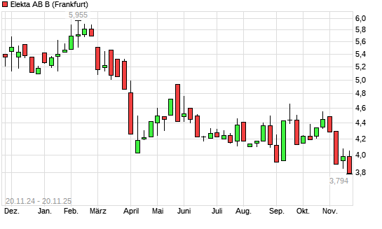 Mit dem Rücksetzer auf 3,79 EUR hat die Elekta B-Aktie (ISIN SE0000163628) am 19.11.2025 ein neues 10-Jahres-Tief erreicht und damit den Kurs vom 18.11.2025 eingestellt.Die Elekta B-Aktie ...weiterlesen