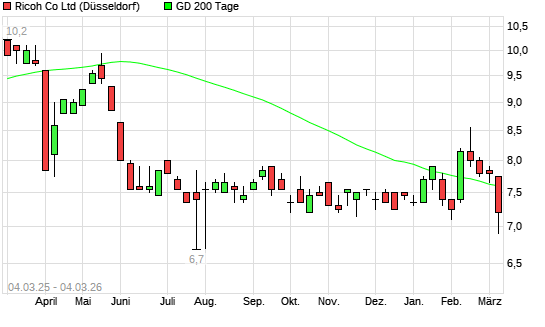 Mit dem Rücksetzer auf 7,50 EUR hat die Ricoh-Aktie am 03.03.2026 die 200-Tage-Linie nach unten gekreuzt.Die Ricoh-Aktie befand sich seit dem 05.02.2026 im langfristigen ...weiterlesen