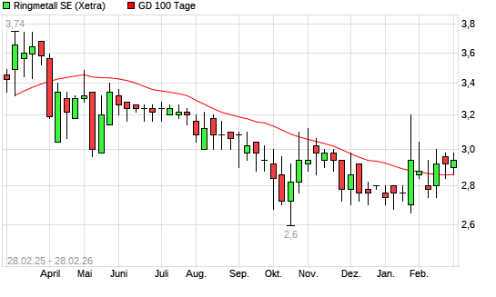 Mit dem Anstieg auf 2,80 EUR hat die Ringmetall-Aktie am 27.02.2026 die 100-Tage-Linie nach oben gekreuzt.Die Ringmetall-Aktie befindet sich seit dem 13.02.2026 im ...weiterlesen