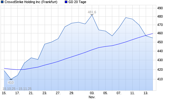 Mit dem Rücksetzer auf 455,30 EUR hat die CrowdStrike-Aktie am 14.11.2025 die 20-Tage-Linie nach unten gekreuzt.Die CrowdStrike-Aktie befindet sich seit dem 18.09.2025 im langfristigen ...weiterlesen