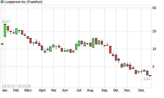 Mit dem Rücksetzer auf 3,54 EUR hat die LivePerson-Aktie (ISIN US5381463091) am 22.12.2025 ein neues 10-Jahres-Tief erreicht und damit den Kurs vom 19.12.2025 eingestellt.Der Abstand ...weiterlesen