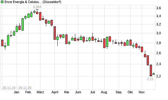 Mit dem Rücksetzer auf 2,20 EUR hat die Grupo Empresarial Ence-Aktie (ISIN ES0130625512) am 24.11.2025 ein neues 3-Jahres-Tief erreicht und damit den Kurs vom 21.11.2025 eingestellt.Die ...weiterlesen