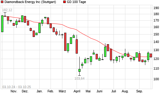 Mit dem Anstieg auf 122,72 EUR hat die Diamondback Energy-Aktie am 02.10.2025 die 100-Tage-Linie nach oben gekreuzt.Die Diamondback Energy-Aktie befindet sich seit dem 22.01.2025 im langfristigen ...weiterlesen