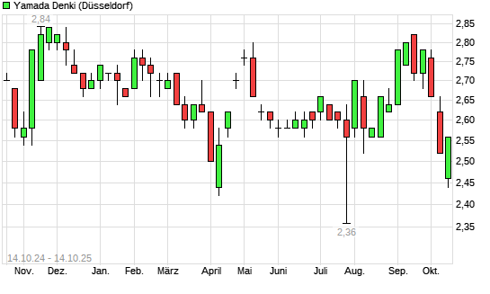 Mit dem Rücksetzer auf 2,54 EUR hat die Yamada Denki Holdings-Aktie (ISIN JP3939000000) am 13.10.2025 ein neues 6-Monats-Tief erreicht und damit den Kurs vom 07.08.2025 eingestellt.Die ...weiterlesen