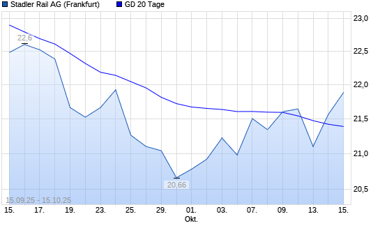 Mit dem Anstieg auf 21,56 EUR hat die Stadler Rail-Aktie am 14.10.2025 die 20-Tage-Linie nach oben gekreuzt.Die Stadler Rail-Aktie befindet sich seit dem 19.09.2025 im langfristigen Abwärtstrend ...weiterlesen