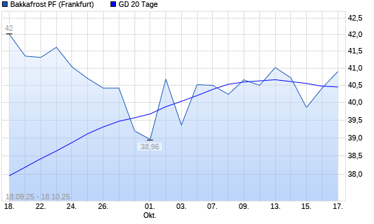 Mit dem Anstieg auf 40,90 EUR hat die Bakkafrost-Aktie am 17.10.2025 die 20-Tage-Linie nach oben gekreuzt.Die Bakkafrost-Aktie befindet sich seit dem 18.02.2025 im langfristigen Abwärtstrend ...weiterlesen