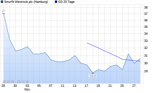 Mit dem Anstieg auf 30,40 EUR hat die SMURFIT WESTROCK-Aktie am 27.11.2025 die 20-Tage-Linie nach oben gekreuzt.Die SMURFIT WESTROCK-Aktie befindet sich seit dem 05.03.2025 im langfristigen ...weiterlesen