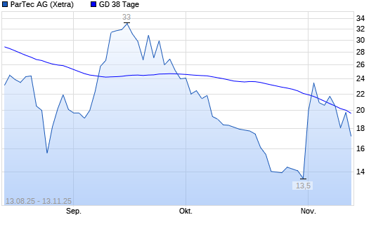 Mit dem Anstieg auf 19,65 EUR hat die PARTEC AG VNA O.N.-Aktie am 12.11.2025 die 38-Tage-Linie nach oben gekreuzt.Die PARTEC AG VNA O.N.-Aktie befindet sich seit dem 08.01.2025 im langfristigen ...weiterlesen