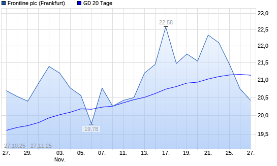 Mit dem Rücksetzer auf 20,75 EUR hat die Frontline-Aktie am 26.11.2025 die 20-Tage-Linie nach unten gekreuzt.Die Frontline-Aktie befindet sich seit dem 23.07.2025 im langfristigen Aufwärtstrend ...weiterlesen