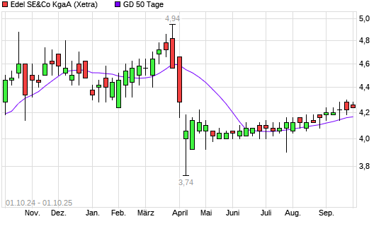 Mit dem Anstieg auf 4,16 EUR hat die Edel-Aktie am 30.09.2025 die 50-Tage-Linie nach oben gekreuzt.Die Edel-Aktie befindet sich seit dem 17.09.2025 im langfristigen Abwärtstrend und hat in diesem ...weiterlesen