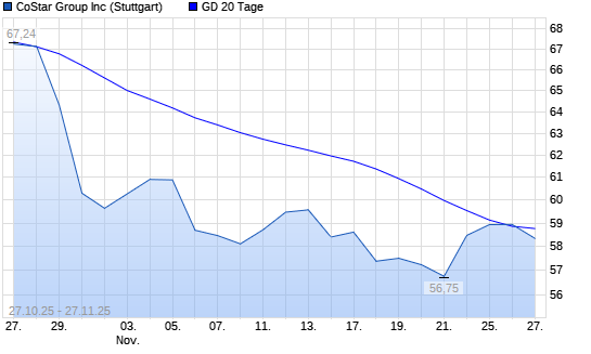 Mit dem Anstieg auf 59,12 EUR hat die CoStar-Aktie am 26.11.2025 die 20-Tage-Linie nach oben gekreuzt.Die CoStar-Aktie befindet sich seit dem 07.10.2025 im langfristigen Abwärtstrend und hat ...weiterlesen