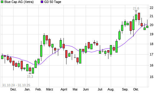 Mit dem Rücksetzer auf 19,70 EUR hat die Blue Cap-Aktie am 30.10.2025 die 50-Tage-Linie nach unten gekreuzt.Die Blue Cap-Aktie befindet sich seit dem 30.07.2025 im langfristigen Aufwärtstrend ...weiterlesen
