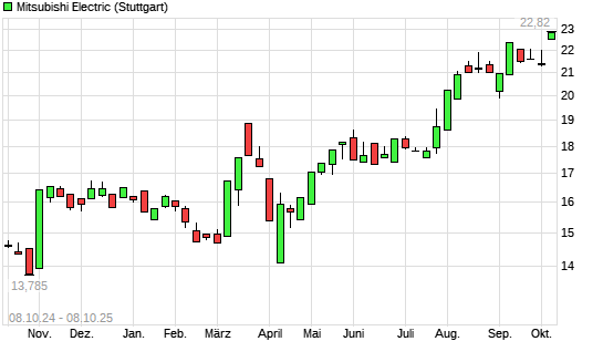 Mit dem Anstieg auf 22,98 EUR hat die Mitsubishi Electric-Aktie (ISIN JP3902400005) am 07.10.2025 ein neues All-Time-High erreicht und damit den Kurs vom 06.10.2025 eingestellt.Die Mitsubishi ...weiterlesen