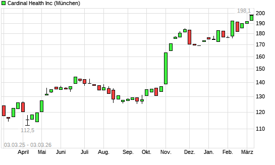 Mit dem Anstieg auf 197,90 EUR hat die Cardinal Health-Aktie (ISIN US14149Y1082) am 02.03.2026 ein neues All-Time-High erreicht und damit den Kurs vom 06.02.2026 eingestellt.Die ...weiterlesen