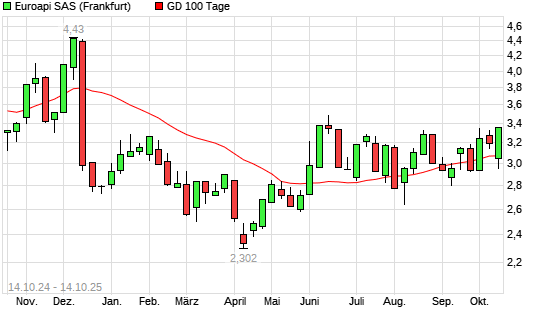 Mit dem Rücksetzer auf 3,05 EUR hat die Euroapi-Aktie am 13.10.2025 die 100-Tage-Linie nach unten gekreuzt.Die Euroapi-Aktie befindet sich seit dem 11.09.2025 im langfristigen Aufwärtstrend ...weiterlesen