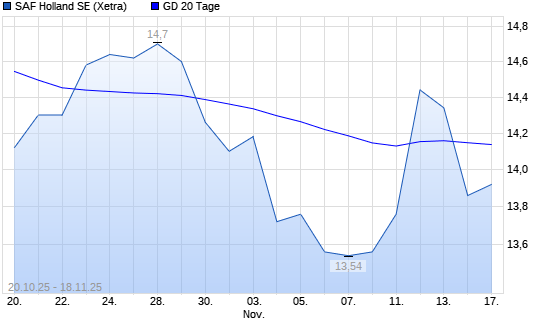 Mit dem Rücksetzer auf 13,82 EUR hat die SAF Holland-Aktie am 17.11.2025 die 20-Tage-Linie nach unten gekreuzt.Die SAF Holland-Aktie befindet sich seit dem 26.08.2025 im langfristigen Abwärtstrend ...weiterlesen