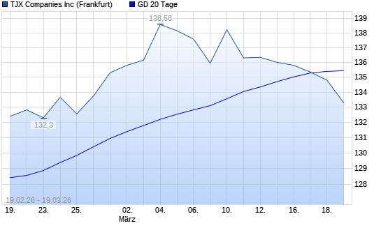 Mit dem Rücksetzer auf 134,80 EUR hat die TJX Companies-Aktie am 18.03.2026 die 20-Tage-Linie nach unten gekreuzt.Die TJX Companies-Aktie befindet sich seit dem 19.08.2025 ...weiterlesen