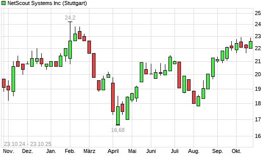 Mit dem Anstieg auf 22,83 EUR hat die NetScout Systems-Aktie (ISIN US64115T1043) am 22.10.2025 ein neues 6-Monats-Hoch erreicht und damit den Kurs vom 10.10.2025 eingestellt.Die NetScout Systems-Aktie ...weiterlesen