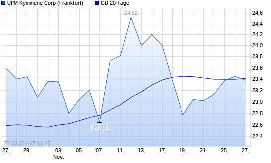 Mit dem Anstieg auf 23,45 EUR hat die UPM Kymmene-Aktie am 26.11.2025 die 20-Tage-Linie nach oben gekreuzt.Die UPM Kymmene-Aktie befindet sich seit dem 13.11.2025 im langfristigen Abwärtstrend ...weiterlesen