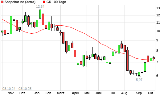 Mit dem Rücksetzer auf 7,00 EUR hat die Snap-Aktie am 07.10.2025 die 100-Tage-Linie nach unten gekreuzt.Die Snap-Aktie befindet sich seit dem 16.01.2025 im langfristigen Abwärtstrend und ...weiterlesen