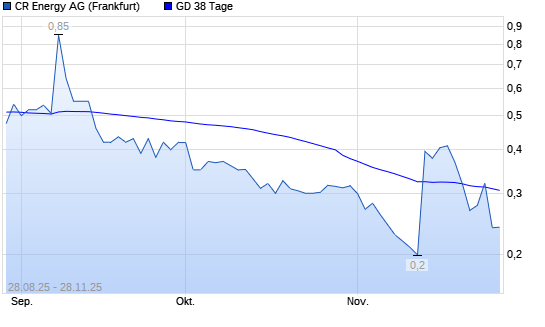Mit dem Rücksetzer auf 0,24 EUR hat die CR Energy-Aktie am 27.11.2025 die 38-Tage-Linie nach unten gekreuzt.Die CR Energy-Aktie befindet sich seit dem 21.08.2024 im langfristigen Abwärtstrend ...weiterlesen
