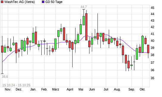 Mit dem Rücksetzer auf 37,70 EUR hat die WashTec-Aktie am 14.10.2025 die 50-Tage-Linie nach unten gekreuzt.Die WashTec-Aktie befindet sich seit dem 13.10.2025 im langfristigen Abwärtstrend ...weiterlesen