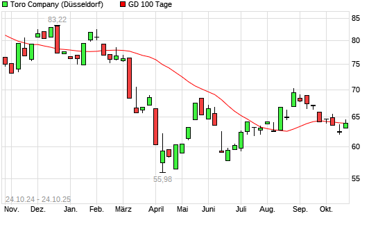Mit dem Rücksetzer auf 63,00 EUR hat die Toro Company-Aktie am 23.10.2025 die 100-Tage-Linie nach unten gekreuzt.Die Toro Company-Aktie befindet sich seit dem 09.09.2025 im langfristigen ...weiterlesen