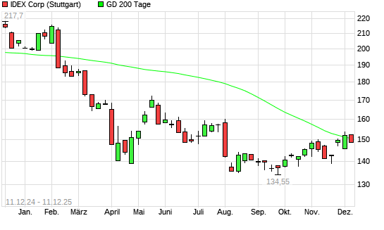Mit dem Anstieg auf 150,80 EUR hat die IDEX Corporation-Aktie am 10.12.2025 die 200-Tage-Linie nach oben gekreuzt.Die IDEX Corporation-Aktie befand sich seit dem 09.12.2025 im langfristigen ...weiterlesen