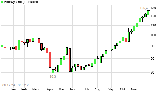 Mit dem Anstieg auf 126,30 EUR hat die EnerSys-Aktie (ISIN US29275Y1029) am 05.12.2025 ein neues All-Time-High erreicht und damit den Kurs vom 04.12.2025 eingestellt.Die EnerSys-Aktie befindet ...weiterlesen