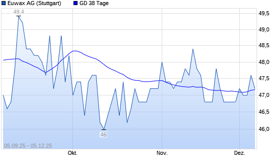 Mit dem Rücksetzer auf 47,20 EUR hat die EUWAX-Aktie am 04.12.2025 die 38-Tage-Linie nach unten gekreuzt.Die EUWAX-Aktie befindet sich seit dem 23.04.2025 im langfristigen Aufwärtstrend ...weiterlesen