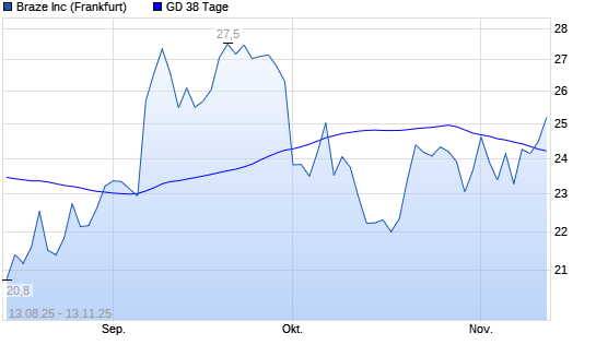 Mit dem Anstieg auf 24,49 EUR hat die Braze-Aktie am 12.11.2025 die 38-Tage-Linie nach oben gekreuzt.Die Braze-Aktie befindet sich seit dem 31.03.2025 im langfristigen Abwärtstrend und hat in ...weiterlesen