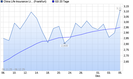 Mit dem Anstieg auf 3,11 EUR hat die China Life Insurance-Aktie am 05.12.2025 die 20-Tage-Linie nach oben gekreuzt.Die China Life Insurance-Aktie befindet sich seit dem 12.05.2025 im langfristigen ...weiterlesen