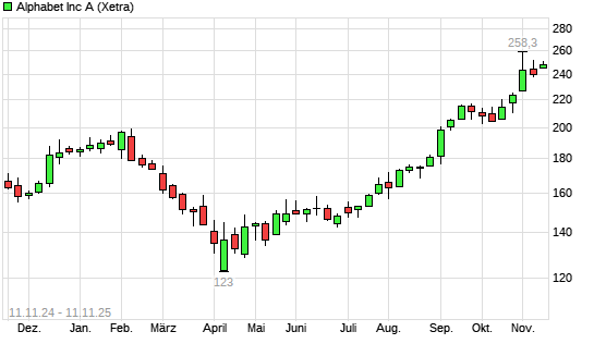 Mit dem Anstieg auf 250,90 EUR hat die Alphabet A (ex GOOGLE)-Aktie (ISIN US02079K3059) am 10.11.2025 ein neues All-Time-High erreicht und damit den Kurs vom 29.10.2025 eingestellt.Die Alphabet ...weiterlesen