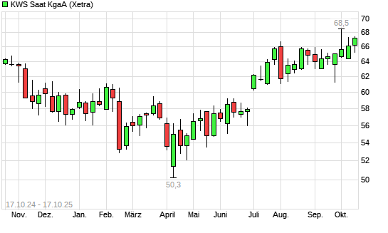 Mit dem Anstieg auf 67,00 EUR hat die KWS Saat-Aktie (ISIN DE0007074007) am 16.10.2025 ein neues 12-Monats-Hoch erreicht und damit den Kurs vom 28.07.2025 eingestellt.Die KWS Saat-Aktie befindet ...weiterlesen