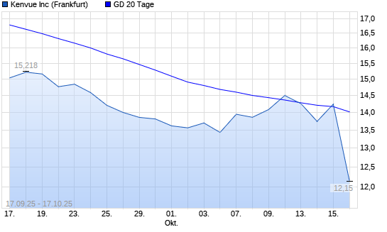 Mit dem Rücksetzer auf 12,15 EUR hat die Kenvue-Aktie am 16.10.2025 die 20-Tage-Linie nach unten gekreuzt.Die Kenvue-Aktie befindet sich seit dem 29.05.2025 im langfristigen Abwärtstrend ...weiterlesen