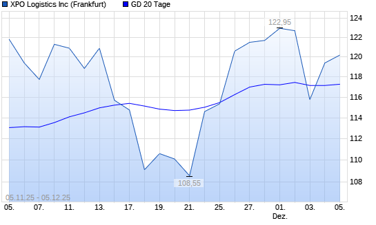Mit dem Anstieg auf 119,40 EUR hat die XPO Logistics-Aktie am 04.12.2025 die 20-Tage-Linie nach oben gekreuzt.Die XPO Logistics-Aktie befindet sich seit dem 31.10.2025 im langfristigen Aufwärtstrend ...weiterlesen