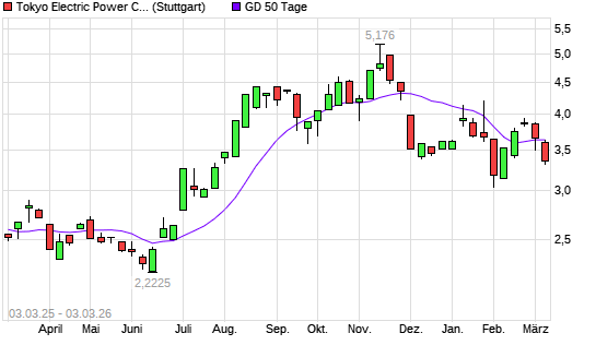 Mit dem Rücksetzer auf 3,54 EUR hat die Tokyo Electric Power-Aktie am 02.03.2026 die 50-Tage-Linie nach unten gekreuzt.Die Tokyo Electric Power-Aktie befindet sich seit dem ...weiterlesen