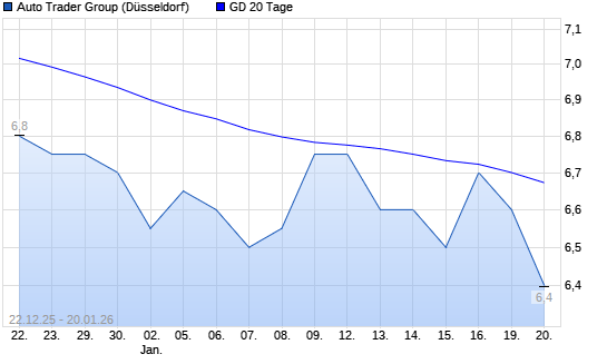 Mit dem Anstieg auf 6,70 EUR hat die Auto Trader Group-Aktie am 19.01.2026 die 20-Tage-Linie nach oben gekreuzt.Die Auto Trader Group-Aktie befindet sich seit dem 27.10.2025 ...weiterlesen