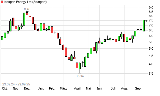 Mit dem Anstieg auf 7,73 EUR hat die Nexgen Energy-Aktie (ISIN CA65340P1062) am 22.09.2025 ein neues 6-Monats-Hoch erreicht und damit den Kurs vom 19.09.2025 eingestellt.Die Nexgen Energy-Aktie ...weiterlesen