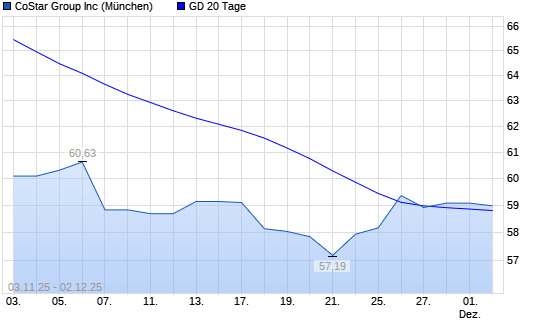 Mit dem Rücksetzer auf 57,95 EUR hat die CoStar-Aktie am 01.12.2025 die 20-Tage-Linie nach unten gekreuzt.Die CoStar-Aktie befindet sich seit dem 07.10.2025 im langfristigen Abwärtstrend ...weiterlesen