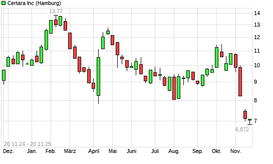 Mit dem Rücksetzer auf 6,98 EUR hat die Certara-Aktie (ISIN US15687V1098) am 19.11.2025 ein neues All-Time-Low erreicht und damit den Kurs vom 18.11.2025 eingestellt.Die Certara-Aktie befindet ...weiterlesen